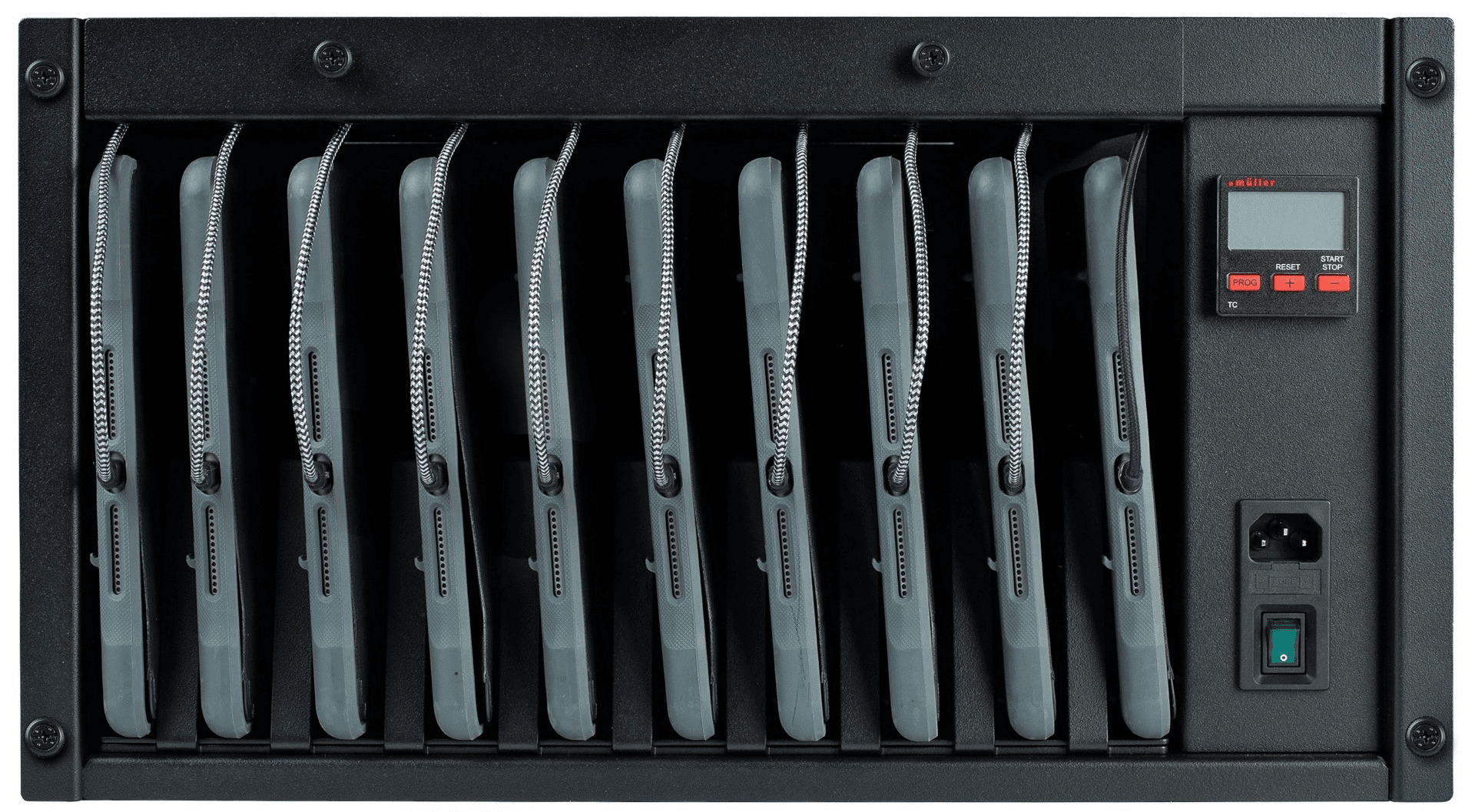 19 inch wandkast met geïntegreerd oplaadstation voor 10 laptops tot 11 inch (scalergy-tab).